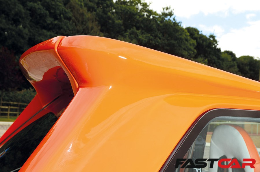 The rear bench has been retrimmed to match, gaining a custom leather look from furniture expert McKay Upholstery, while the leather doorcards were chosen for their orange stitching. Edge speakers, hooked up to a JVC Chameleon stereo, also got the nod thanks to their tangerine highlights. Contrast comes courtesy of a custom black rooflining and carpets, both measured and fitted by Rob himself.