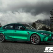 Next up, and continuing at the front, you have those angled air intake vents that point directly towards an oil cooler and of course the brakes/wheels. On the bonnet, there are sculpted vents, or none vents as they aren’t open, just an aerodynamic design feature. Follow your eyesight down the side of the car and you’re met with thumping great wheel arches, some 80mm wider than the standard 3-series. This is reminiscent of the BMW E30 M3 that had flared arhces.