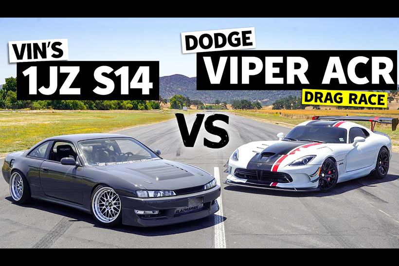 As part of Hoonigan’s This v That series they pitch completely opposite cars against each other. This time it’s a 1JZ 240sx vs a Dodge Viper ACR…