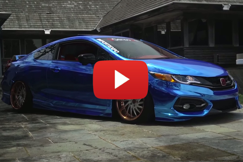 Chrome blue exterior, red interior, Avant Garde wheels and dropped to the floor, it’s Choi’s crazy stanced Honda Civic Si.