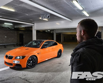 Meet the M3 GTS-alike 330i E92 with a real taste of North East humour to go with the Fire Orange paint.