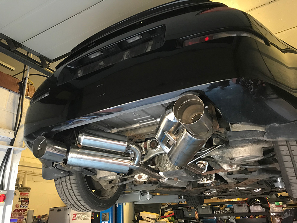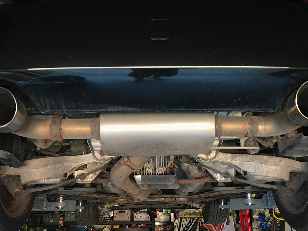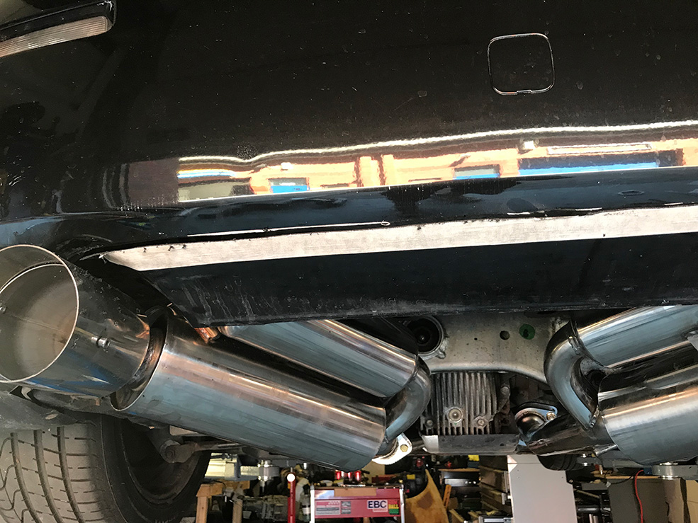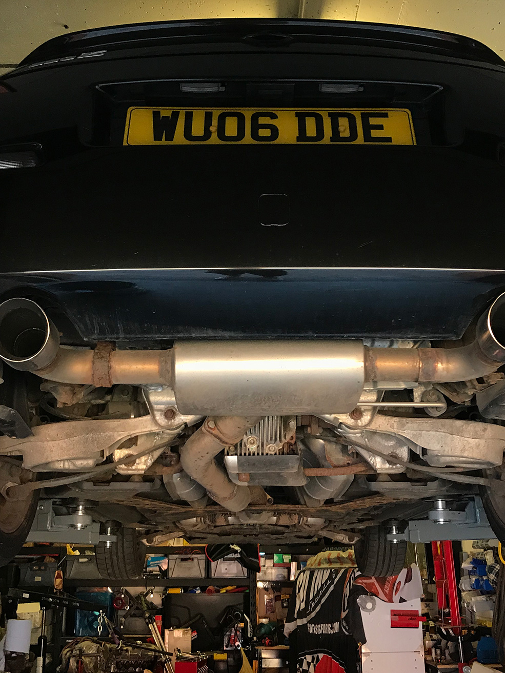 So much so in fact, that I thought it necessitated a spot of air saw bumper surgery. Apparently, the cool kids call this a ‘bumper tuck’ which is all very lovely. Personally, I call it ‘lopping a bit off so you can see the thing’. In any case it would almost be a shame to hide away this stainless-steel work of art, and there’s no denying it’s transformed the arse-end of this motor. It’s like a Kim-K selfie or somethin’… all that sexyful junk in the trunk!