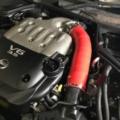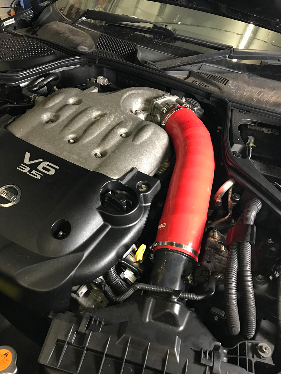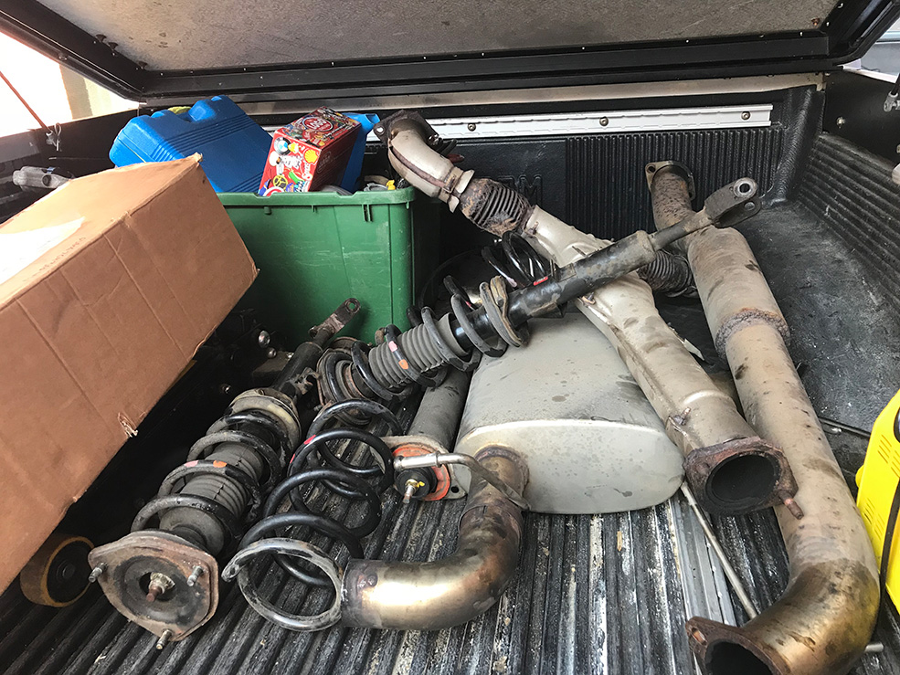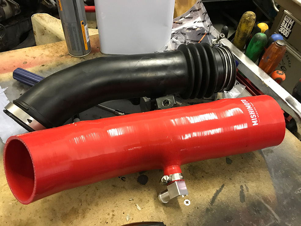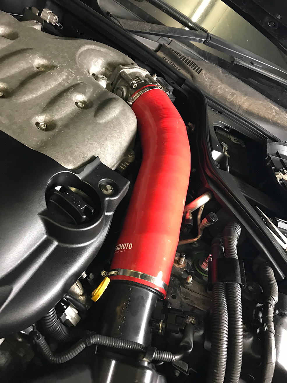 The same can be said for the other end of the engine. We have no idea who’ll be winning this car at TRAX, or their insurance status, so from the very start, I’ve been told I have to leave the original airbox in place. What wasn’t mentioned however was the intake hose, so I couldn’t resist spending about 23-seconds swapping it over with this 5-ply silicone item from Mishimoto. This far less-restrictive pipe will release a few horsepowers on its own and can also be used with an aftermarket filter should the new owner choose to fi t one. It also looks the part but, most of all, the OEM airbox is still there, right? That’s no harm, no foul in my book!