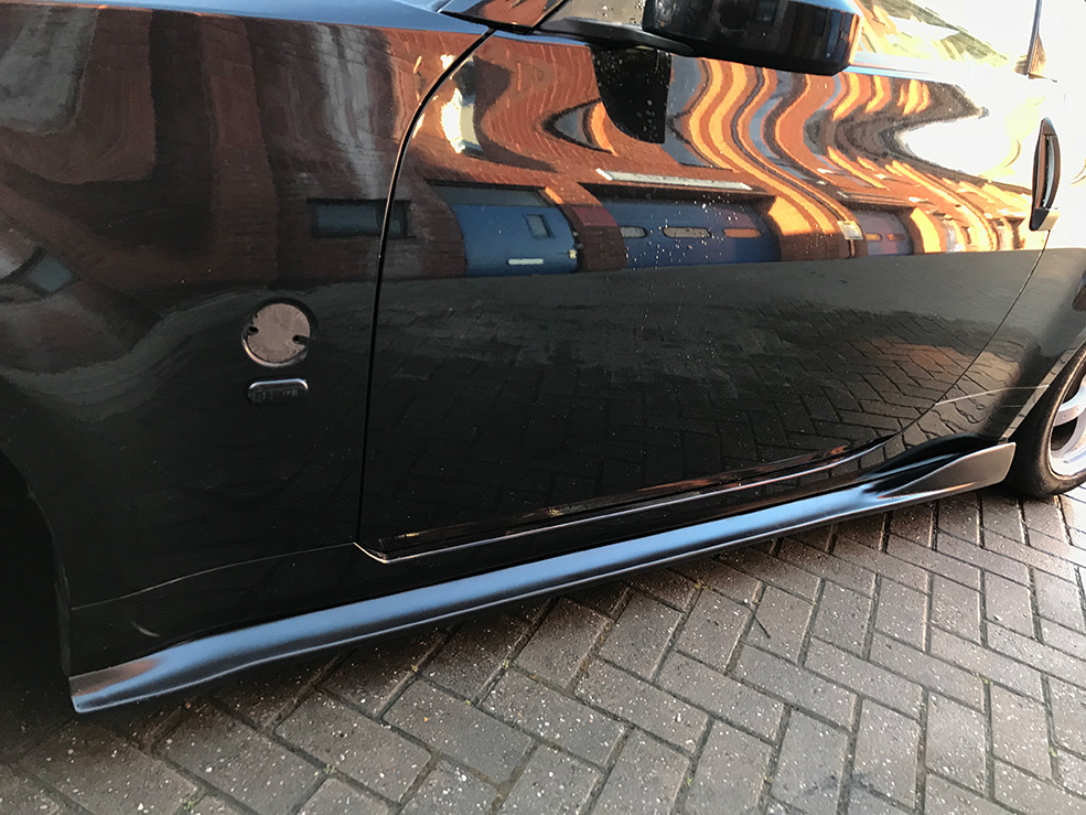 First up though, some subtle skirtage from the guys at Tarmac Sportz. These high-quality FRP items are rather tasteful but, most importantly, an absolute monkey like me can get them on without any messing about. In fact, they screw into the OEM side skirts so there’s no adapting and filling needed to make them fit properly. They’re also supplied ready-primed, so all I needed was a few coats of satin black, and they’d be ready to go.
