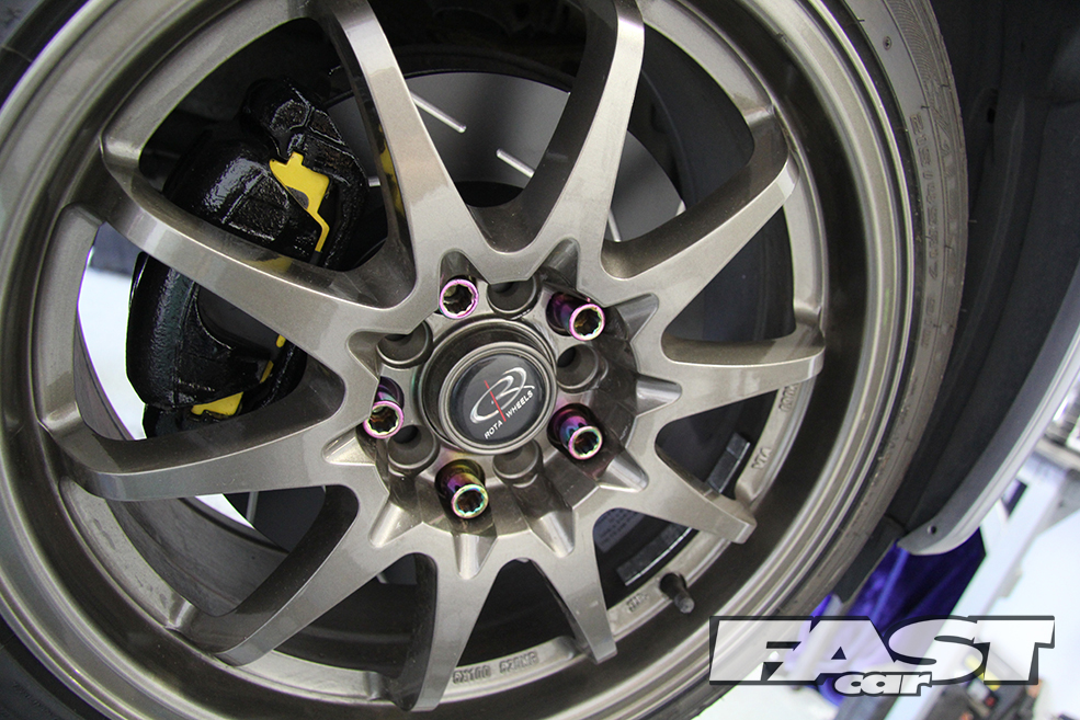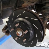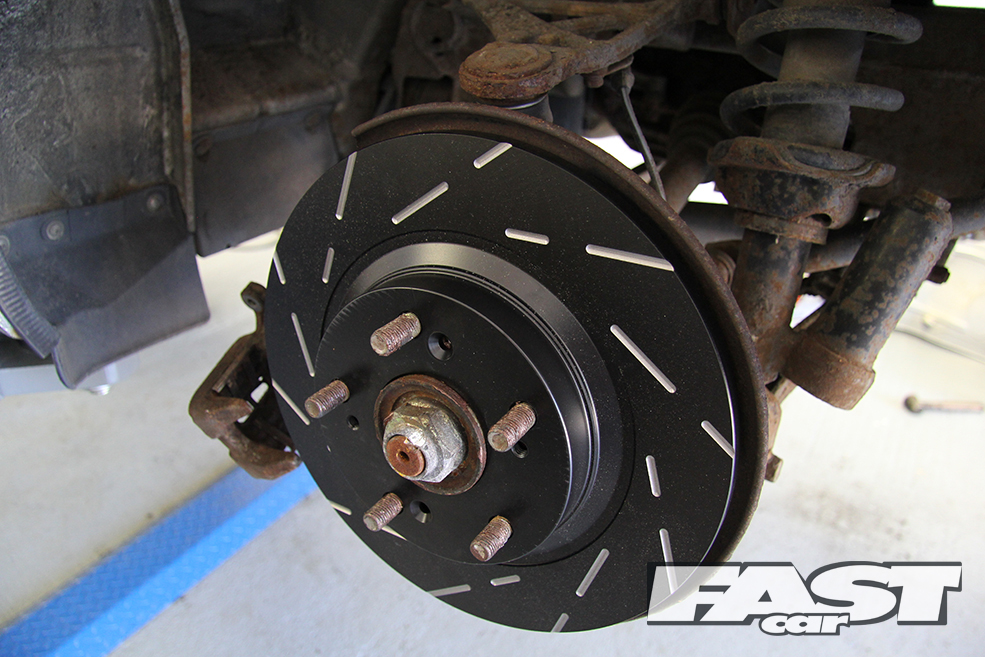 As the S2000 is what we call in the trade ‘a spirited drive’ we thought we’d better go for some slotted brake rotors. These little beauties have a number of grooves machined into the face, designed to clean off the glaze that builds up with the high temperatures experienced under heavy braking. This increases the bite of the pads and also provides channels to vent gasses, produced between the disc and pads that can cause brake fade.