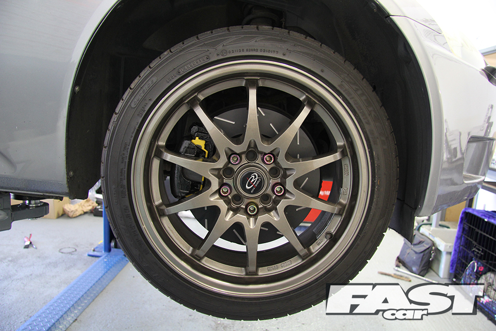And as for fitting, we popped down to Down & Out, the South West’s go-to guys for air ride, lowering and car modifying. Why lay on the damp wet floor changing brakes when someone else can do it for you, eh? Especially when our big boss Phil is paying. As we’ve mentioned, the previous owner had done some recent maintenance on the brakes, so we avoided all the normal S2000 issues of sticky piston and slider pins and had no issues with fitting at all. Perfect!