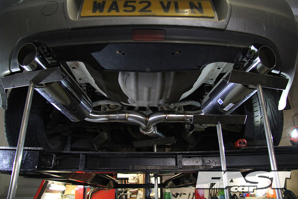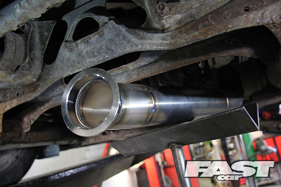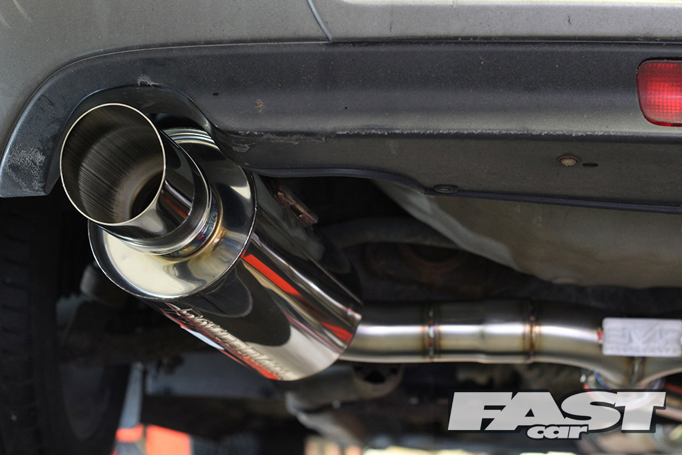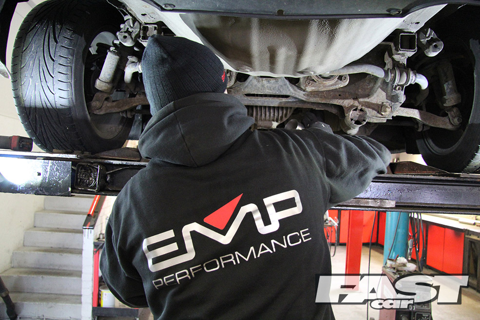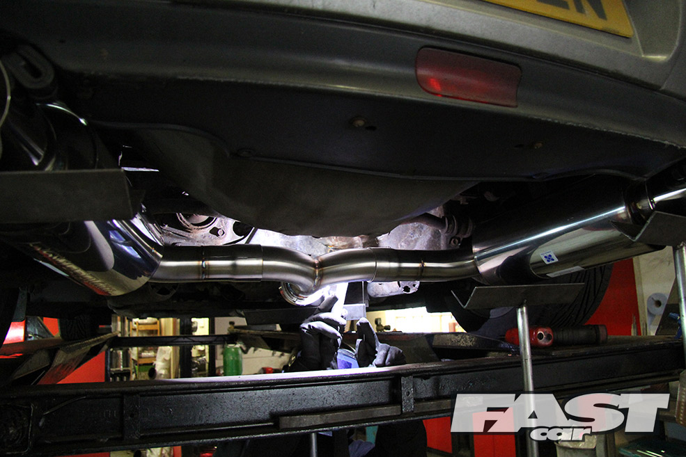 Within minutes the car was on the ramps and EMP’s Dave Phillipson was coming up with ideas for the system. After a quick chat we agreed on a 2.5-inch cat-back system going through to twin backboxes with 3.5-inch exit Japanese style tips. Dave also recommended positioning the back boxes at a bit of angle for that authentic Jap look.