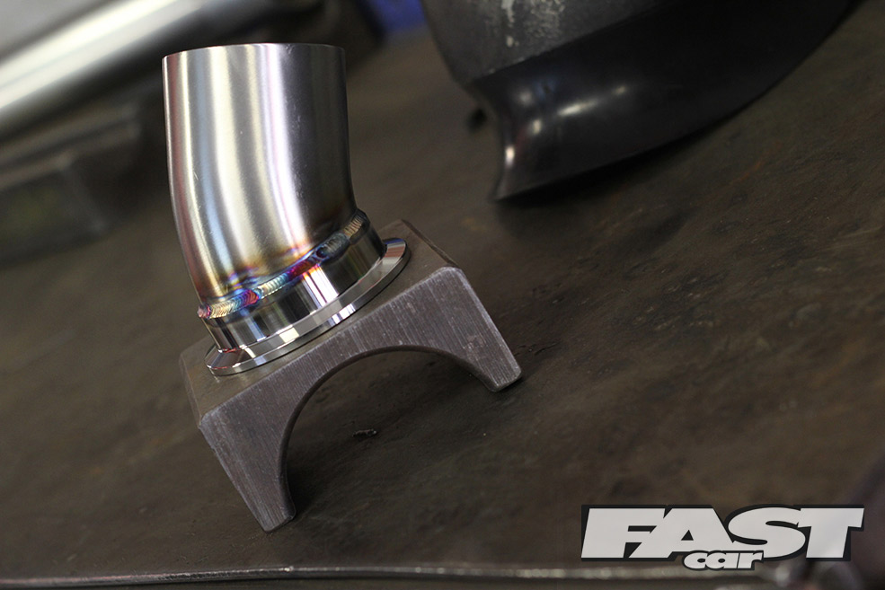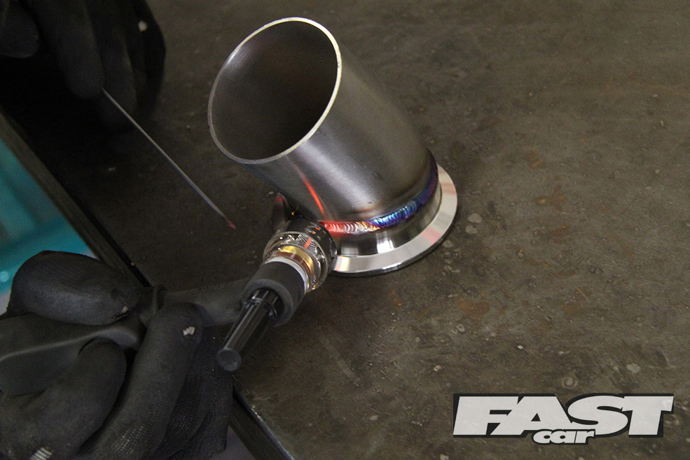 In no time, the old system was on the floor and Dave was measuring, cutting, grinding and working his magic with the 2.5-inch Powerflow T304 grade stainless steel pipework. As with most of EMP’s work there was none of this shaping pipes in a hydraulic bender, no everything was made to measure and custom made with free flowing straights and beautifully TIG-welded mandrel bends.
