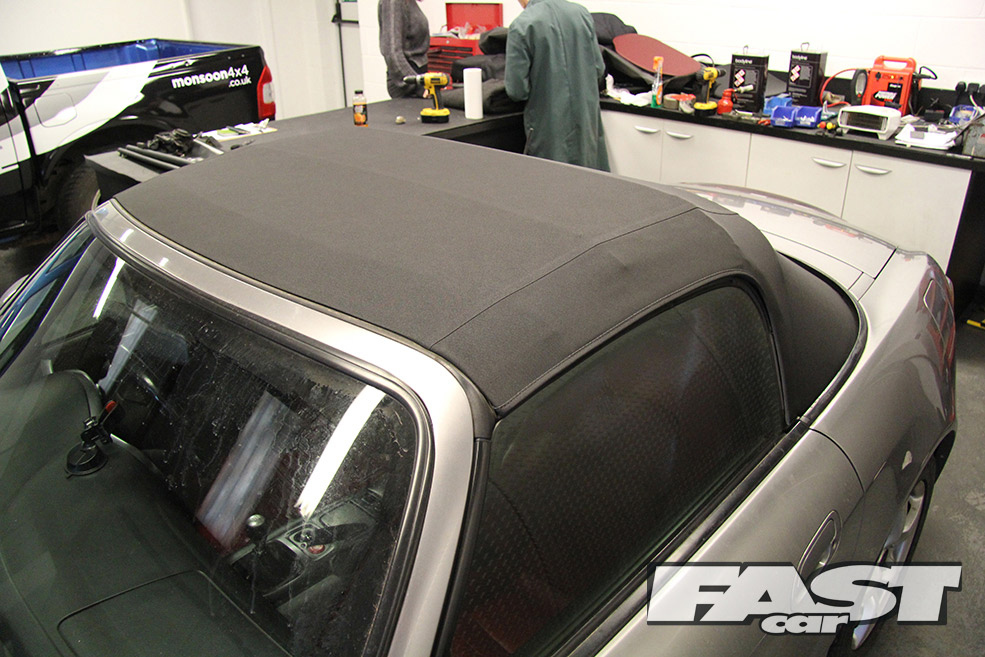 And, it was at this point we decided it was lucky we did leave it to the professionals, as it was evident just how intricate a job fitting a soft top is. Of course Monsoon’s highly skilled fitters made it look easy, but you could see this was from years of experience of replacing roofs on everything from Mazda MX-5s and BMW Z4s to Porsche 911s and Mercedes CLKs.