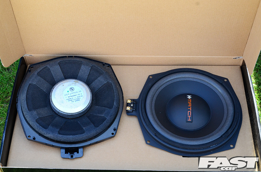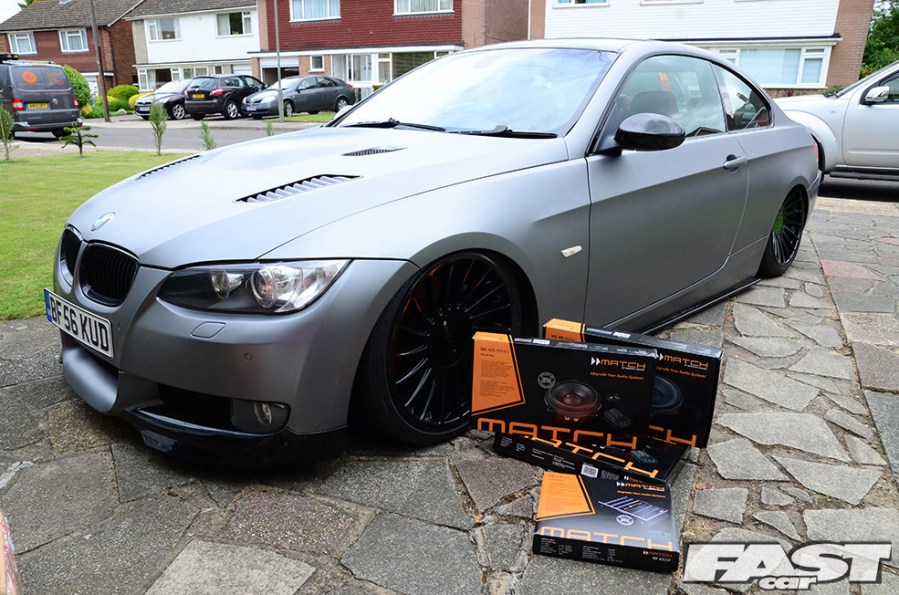 Regular readers of the magazine will know that a couple of issue ago we used the 335i as a test car for trying out a bunch of Audiotec Fischer Match products available from Midbass. Match is a plug and play solution for replacing your car’s stock audio system. It uses all the original speaker housings and, with some loom witchcraft, bypasses the original amplifier for their uprated version. All while keeping the car’s original headunit – handy on the 335i as the iDrive system is all integrated.