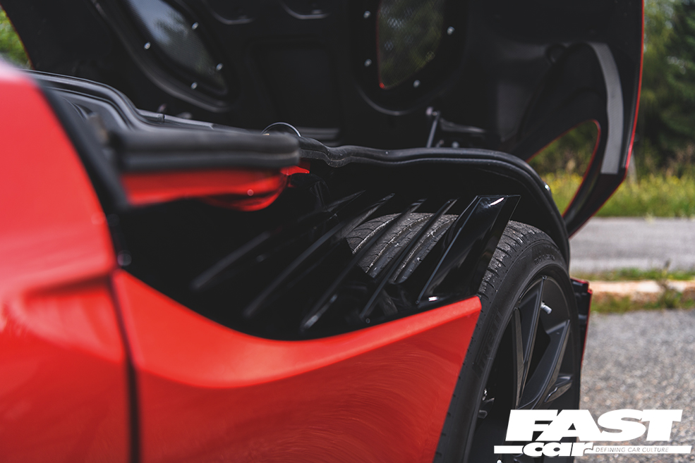 The Swift Voyager is anything but. I’ve been stuck behind this meandering motorhome for miles, on a route so tortuously twisty that even 725hp isn’t enough to blast past. Then, miraculously, the road unravels and stretches out ahead: a long straight through a tunnel of trees. I won’t need telling twice. I click down two ratios with the left paddle and – woooompf – the rolling roadblock shrinks to a speck in my mirrors. Now that’s swift.