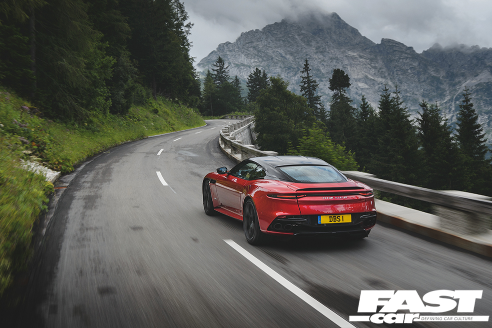 We are high in the German Alps on the launch of the Aston Martin DBS Superleggera. The lush landscape is dotted with charming chalets and bemused cows. Julie Andrews is surely on standby, ready to burst into song at any moment. The Aston Martin DBS, though, is making V12 music of its own, its gargling growl building to a chest-beating bellow that echoes along the valley.