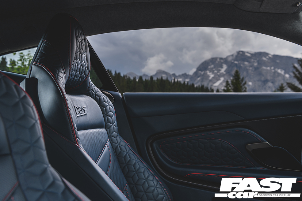 Unlike its little brother, the DBS doesn’t have a hell-for-leather Track mode. Choose instead from GT, Sport and Sport Plus, with suspension and drivetrain response configured separately via switches on the steering wheel. Adaptive damping is standard, along with a mechanical limited-slip differential (the Vantage uses an electronic ‘E-Diff), while weight distribution is a near-perfect 51:49 – helped by wedging the V12 as far back as possible beneath the scuttle.