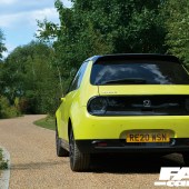 Performance potential in spades then, for sure; this particular car is the e Advance, which is the upper level of the two available specs. The standard Honda e has 134bhp, while the e Advance gets 151bhp along with a few trim upgrades. It’s got all the quickness you need in a city car, plus much more besides – if your commute involves a dual carriageway or bypass, you’ll soon become addicted to blowing everyone away at the traffic lights – but this car’s real party piece is the interior. It’s beautifully designed; the ethos was to create a sort of premium lounge feel, and all of the materials reflect this. The comfy seats are trimmed in quality cloth (leather is an option, but this stylish cloth suits it better), and the dash panel is a matte-effect wood like you’d find in a top-of-the-range Volvo. Best of all, the lowline dash looks like one big full-width screen, which is super-futuristic. It’s actually five separate screens: at either end is a display to mimic a wing mirror view (as this car doesn’t actually have wing mirrors, but instead has little rear-facing cameras mounted on the doors), in front of you is a customisable screen for your dials and readouts, and the rest of the dash is made up of two large widescreens. These can show a DAB display, a sat-nav screen, or numerous other options, and they can be swapped from side-to-side. You can even turn the whole thing into a big virtual fish tank. And if that’s still not enough screens, there’s a switch to flick on the central rear-view mirror to turn that into a display for yet another rear-facing camera. Tech-heavy enough for you? There’s plentiful battery power for all this too; it’s got a 35.5kWh battery, which is more than beefy enough. It’s good for a range of 137 miles, which isn’t class-leading but certainly decent – and depending on what charging options you have available, you can whack in an 80% charge in a little over half-an-hour.