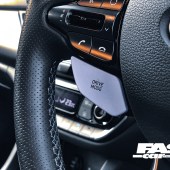 The actual shifting points on the i30N are lovely, it has a strong feel to the lever for confident shifts. The steering wakes up a bit in sport, adding some weight to it, albeit with limited feel. But I like heavier steering, it makes you feel like you’re working for something. The engine is strong. The 2.0-litre turbocharged unit produces 271bhp and 260lb ft of torque in the performance trim (250bhp and 260lb ft in regular N – yes, same torque) sounds great through the rev-range and pulls strong to almost the redline. It does drop off towards the last 500rpm and it does discourage you from limiter bashing it, something the Honda entices you to do. The shift lights are a neat touch and come alive with around 1500rpm to go.