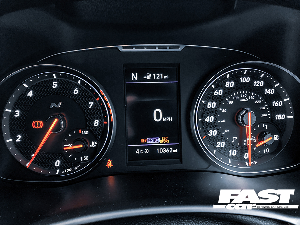 N custom is configurable via the infotainment system, once you press the button it gives you the option on the screen to adjust the settings. It’s rare to see such choice as well, reminiscent almost of the older GT-Rs in its animation and displays. So, here goes. You can adjust the engine settings for throttle response, suspension, differential, rev matching, exhaust sound, steering and stability control. N mode puts all of these in the most aggressive setting, however, tip, day-to-day driving, have everything in the top settings bar the suspension, which I had in normal. It’s far less jiggly and crashy and offers a comfy, but still composed, ride. I never found a scenario where the aggressive damping was needed, perhaps that would have become more apparent on a circuit. Exhaust sound in sport + is a must if you want healthy bangs off the throttle above 3krpm…