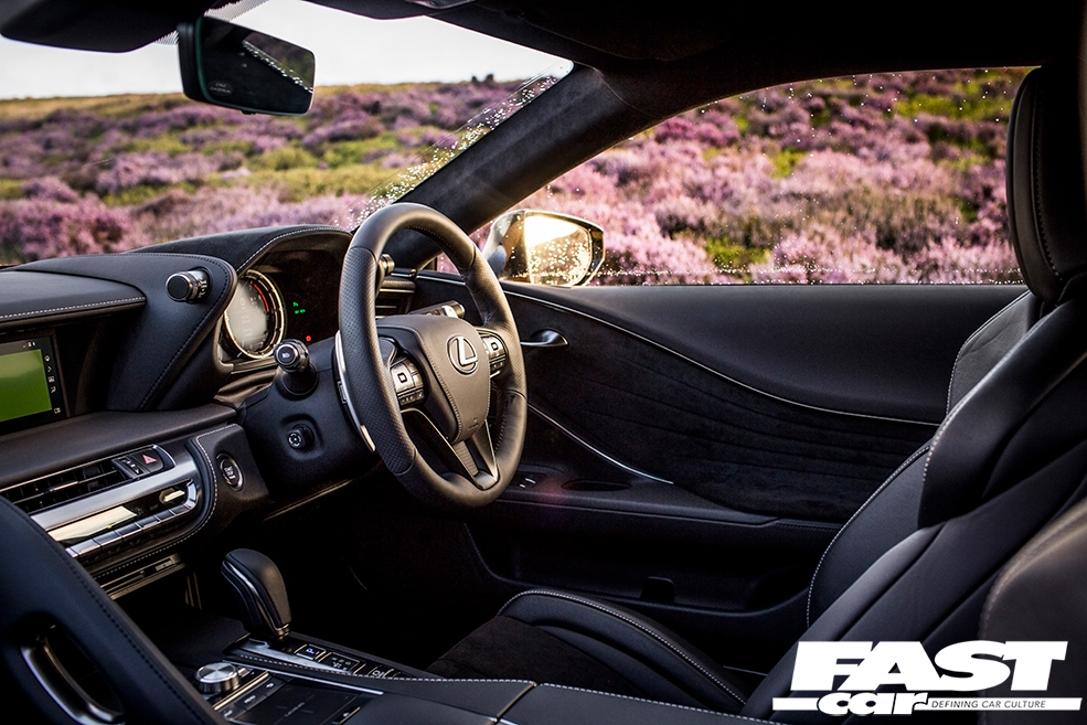 When you first hop into the LC you’re greeted with one of the most welcoming cabins I’ve experienced. Nothing has been left unturned, each surface finished in alcantara, carbon fibre or leather. The seats hug around you to give you the support of a bucket, but with ultimate comfort. This feels like a car you could cruise across Europe in without ever having to leave the cockpit. While I wasn’t able to swing a makeshift Euro tour at the expense of Midge, I did however tick off almost 1000 miles in the week I had with the car. It’s a cabin you never want to leave, driving doesn’t so much tire you out, it relaxes you to a level that makes it comfortable over hours of consistent driving.