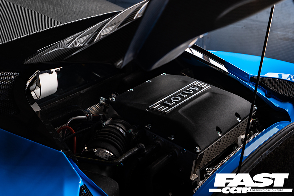 Lotus says this is the most aerodynamically efficient Lotus road car of all, with carbon fibre panels used extensively across the whole car. In fact, sculpted carbon fibre ducts behind each rear wheel vent high pressure air from the wheel arches, balancing downforce across the whole car. This also looks very cool from behind as you can see straight through to the tyre!