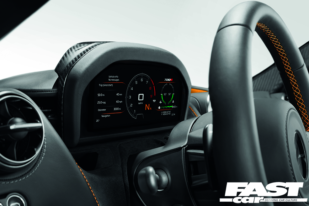 At this sort of money, you really need a cool piece of tech in a supercar, something that makes the passenger gasp at its audaciousness. In the 720S it is the Folding Driver Display. This deploys as you open the door, then initiates a merry light show. When you are in maximum-attack mode, on the road or more likely the track, the display will slide down to its slim incarnation, giving you extra visibility to ensure you can hit those apexes with millimetre-perfect precision.