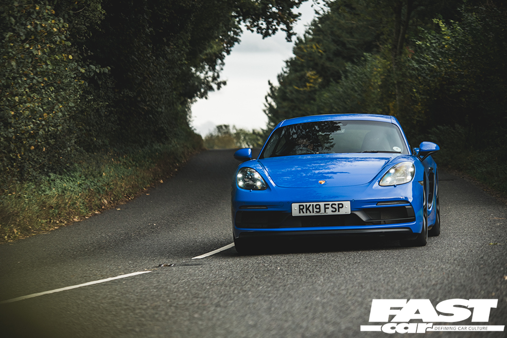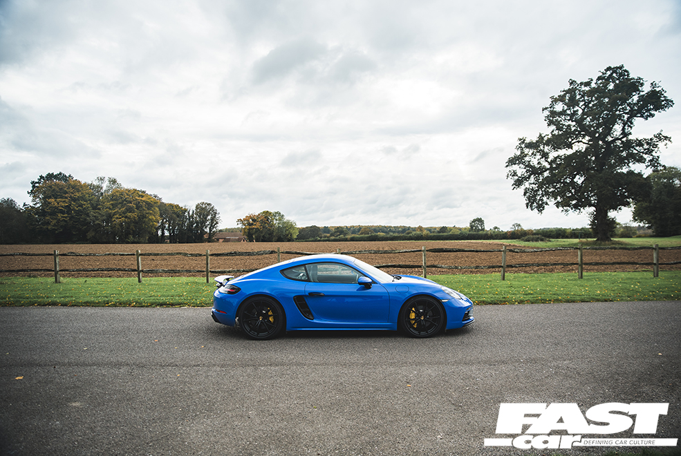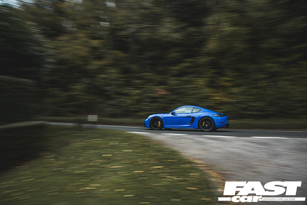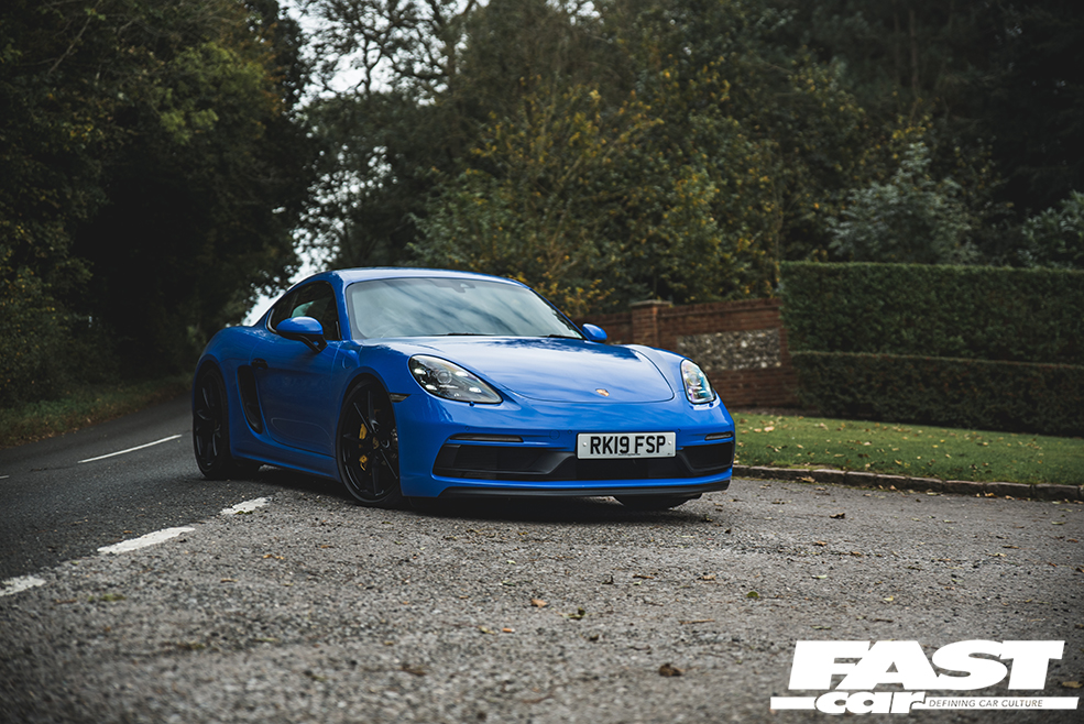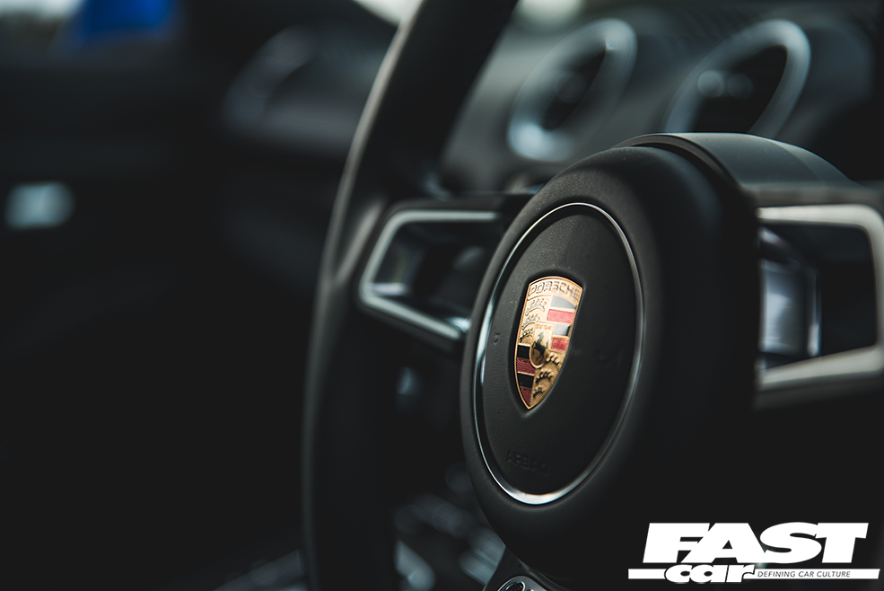 But now the Cayman is a four-cylinder with a turbo strapped to its 2.5-litre engine, we wanted to find out if this Evo-sounding sports car lived up to the Porsche hype. At £78k with options it’s by no means cheap, but this has been specced to the nines (German pun intended) with Carbon Ceramics (£5-and-a-bit-K) and colour sampled Maritime Blue paint (£6k). It’s also got the latest PDK box for ultra-sharp gear changes.