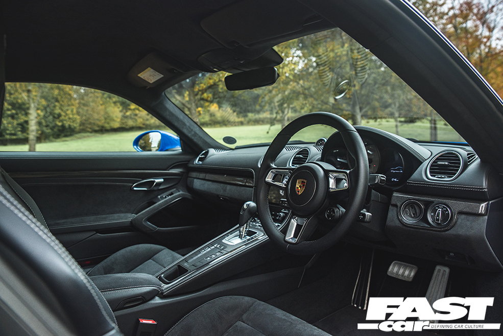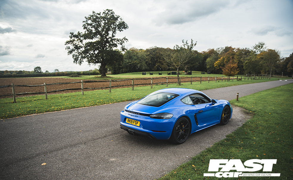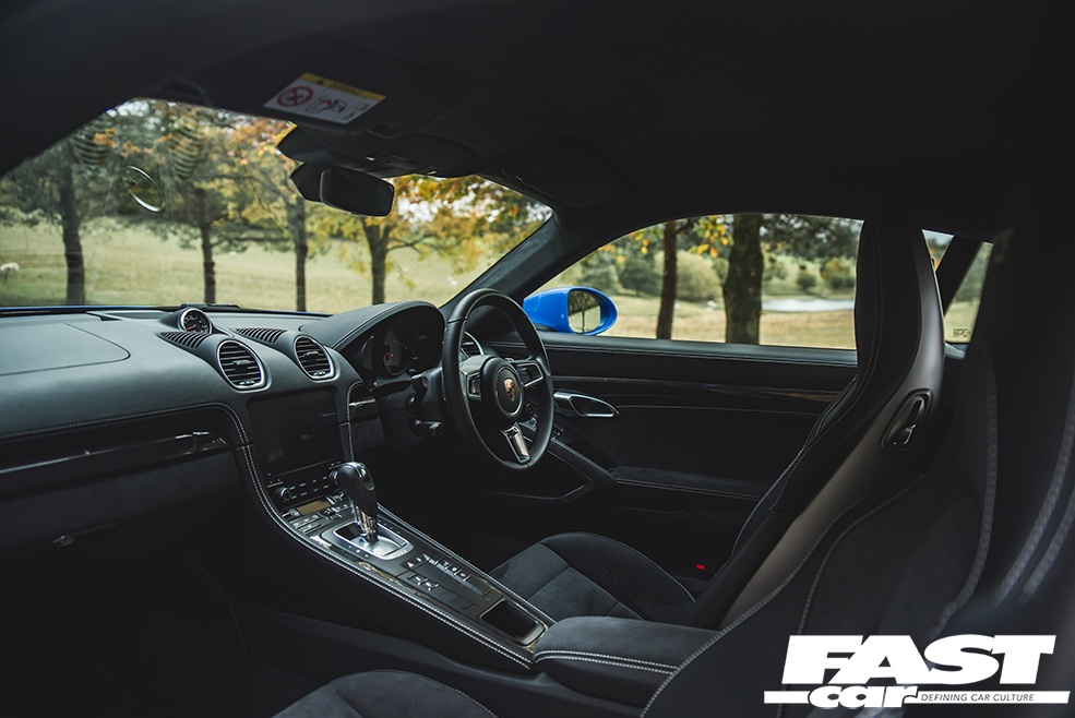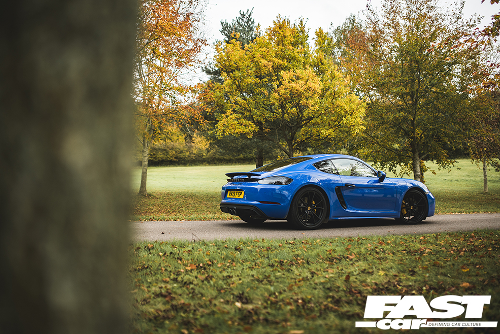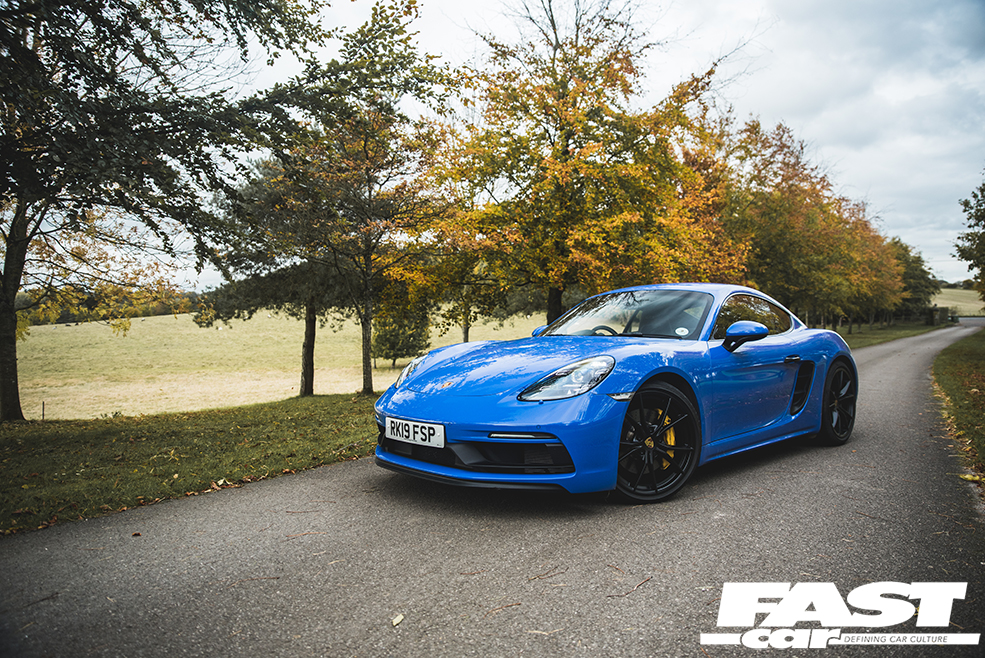 But now the Cayman is a four-cylinder with a turbo strapped to its 2.5-litre engine, we wanted to find out if this Evo-sounding sports car lived up to the Porsche hype. At £78k with options it’s by no means cheap, but this has been specced to the nines (German pun intended) with Carbon Ceramics (£5-and-a-bit-K) and colour sampled Maritime Blue paint (£6k). It’s also got the latest PDK box for ultra-sharp gear changes.