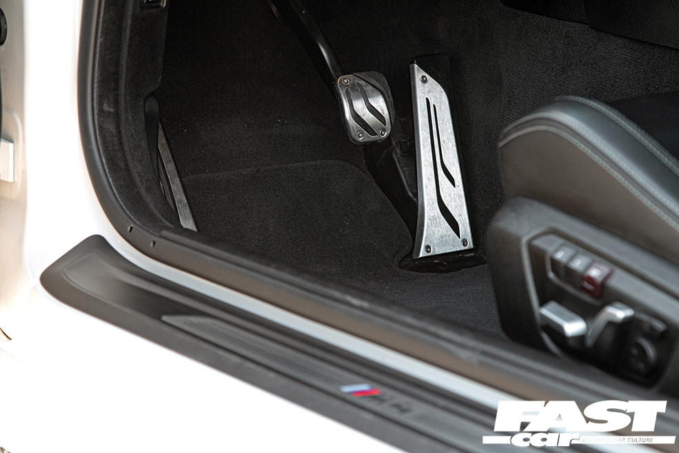 For suspension, Ricky chose a set of Öhlins Road & Track coilovers, which offer plenty of adjustment, allowing him to fine-tune his M4’s handling based on the type of driving he’s doing and their track bias is perfect for him as, while the M4 might be his daily, it also gets to enjoy some circuit time, while the SPL Titanium Links combined with the Fall-Line Motorsport kit helps him put all that power to the ground. Finally we come to the interior and, as with the exterior, things have been kept very subtle and stock in here. “The interior is very basic and stock-looking and I did all of the interior mods myself,” Ricky says. “I installed the M Performance Alcantara arm rest, DCT carbon fibre knob, DCT console trim, carbon fibre/Alcantara parking brake handle and stainless steel pedals,” and while that might be a modest selection of mods, these M Performance additions are more than enough to enhance the cabin’s aesthetics and make it feel just that little bit more special.