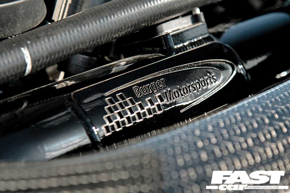 “Once I drove the car for another 5000 miles I felt that it could use a lot more mods so I purchased the following items and had them all installed at once,” he says and everything he bought took the M4’s power level from reasonable to incomprehensible in one giant leap. It took a hell of a lot of work but, damn, did it get results. “I bought Evolution Racewerks charge pipes, Fuel-It Stage 4 kit, Driveshaft shop axles and propshaft, SSP Spec-R clutch and transmission package, Pure Turbos High-Flow Stage 2 turbos, Burger Motorsports intakes, CSF front-mount race heat exchanger, top-mount cooler and DCT cooler, and a CarBahn Autoworks Stage 2 engine. All of these modifications were added just 8000 miles after purchasing the car and installing all of these modifications took about nine months,” he explains and that’s an incredible array of upgrades, but it’s the CarBahn Autoworks Stage 2 engine that really stands out because that’s what takes this build to a whole other level.