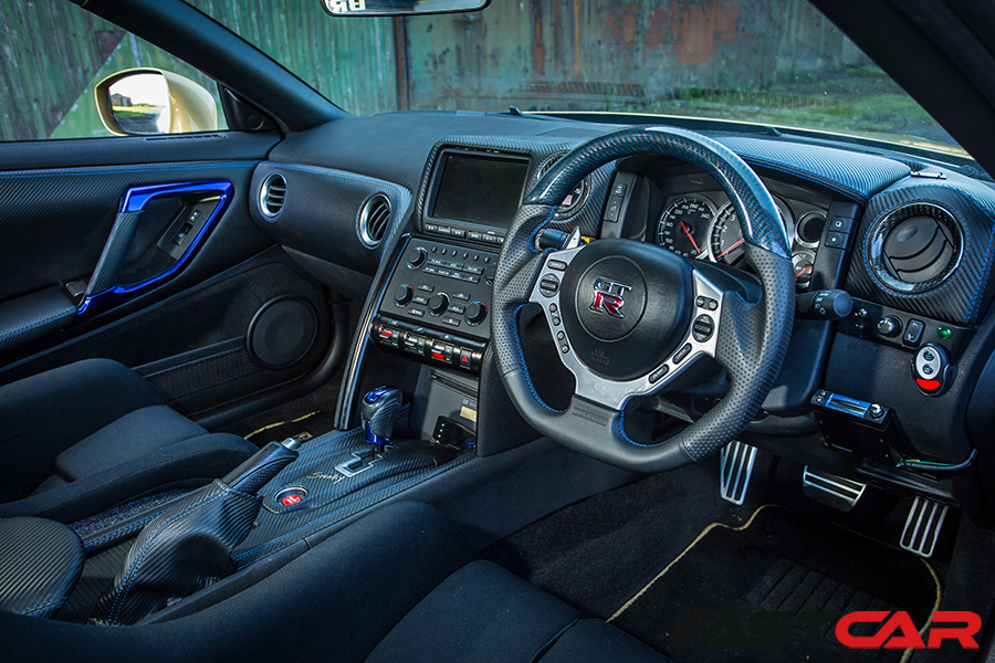 Bride Zeta seats; Takata harnesses; Top Secret steering wheel; Top Secret mat set; Top Secret gearknob; GReddy 2.5 bar gauge; Top Secret custom carbon dash; door cards and centre console.