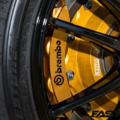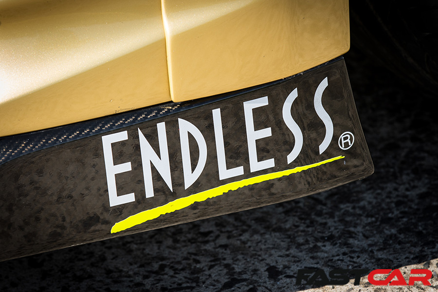 Top Secret TSS coilover set; Swift spring set; Brembo brake callipers; Top Secret brake disks; Endless brake pads, Top Secret strut braces; Top Secret suspension arms; Enkei SR01MG 10x20in (front) and 11x20in (rear) wheels; Bridgestone Potenza 255/40×20 (front), 295/35×20 (rear) tyres.