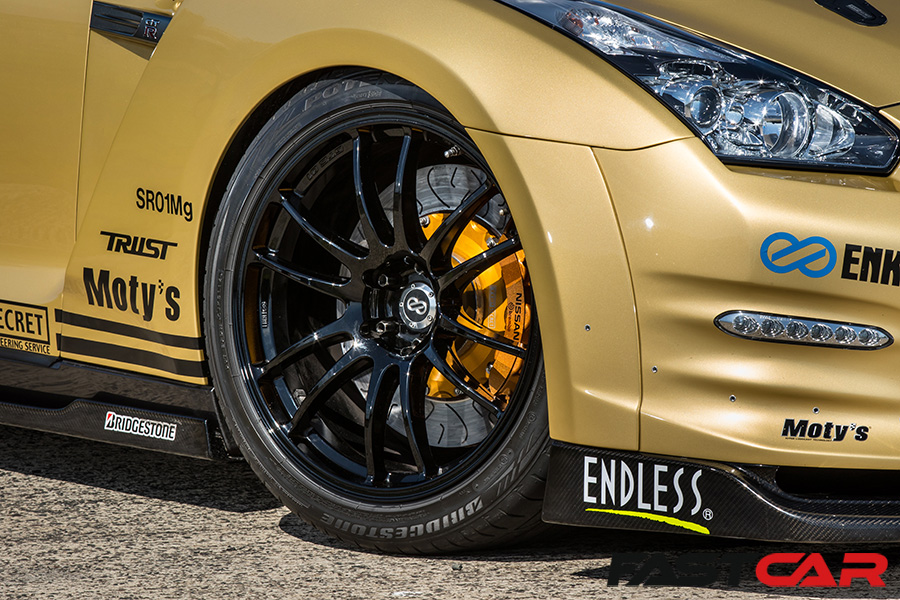 Top Secret built engine – VR38 RX 4L GReddy Engine Stroker Kit internals; HKS camshaft; HKS valve springs; HKS head gasket; TD06-25G turbo set; Top Secret ti manifold and front pipe; Top Secret exhaust system TV-Pro; Top Secret intercooler system; GReddy intake piping; GReddy ECU; HKS boost controller; GReddy fuel delivery system; Top Secret surge can system; GReddy DCT cooler.