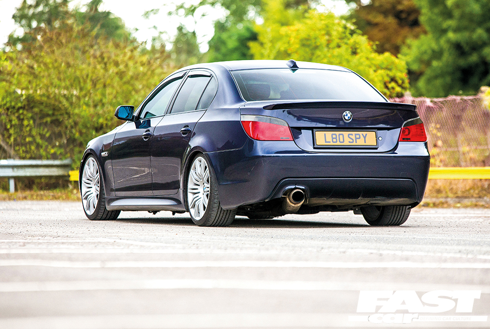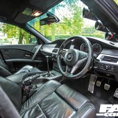 The chassis, meanwhile, has also received a few tweaks. “I run Bilstein B8s on a 50/60mm drop, always like ’em low,” grins Lewis. “I did previously run coilovers, but I ditched them and prefer the shocks and springs personally,” he adds. He’s not lying when he says he likes them low, and this E60 is riding impressively close to the tarmac. The combo of B8s and springs is joined by a set of adjustable front and rear anti-roll bar drop links, Powerflex poly bushes, and PSB poly rear lower arm bushes, as well. The brake setup comes from an M5, and if you’re disappointed that this E60 isn’t wearing a more extravagant set of wheels, well, that wouldn’t fit Lewis’s sleeper vision. “The 19” spiders on these E60s suit them so well, there was no need to change,” he says, adding: “Less is more in my world.”