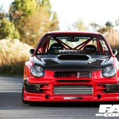 2.5-litre EJ25 engine, STi forged rods, crankshaft and pistons, EJ20 cylinder heads, Kelford 264 cams, Supertech titanium valve springs & retainers, Brainchild Customs prototype aluminium4 intake manifold, 3in prototype turbo back downswept exhaust system, Boomba Racing aluminium 75mm throttle body, MSI solid billet lower engine mounts, HKS turbo velocity stack, Nitrous Express direct port nitrous kit with Gen-X2 upgrade, custom twin fuel tanks, Weldon 1000bhp external fuel pump, SARD FPR, Walbro 255 high-flow in-tank fuel pump, Tial 38mm wastegate, TurboXS v-band downpipe, blow-through MAF conversion, DELTA engine management, high-flow fuel rails, high-performance boost controller, FMIC, racing bypass valve, remote ECU map selector, T04R custom turbo kit, V2 up-pipe, Zerosports unequal length manifold, ARC aluminium radiator, Jet-Hot coated downpipe, external turbo housing, wastegate, dumptube & exhaust manifold, Process West oil cooler, Piper oil filler neck, Grimmspeed crank pulley transmission Pfitzner ‘dog’ ’box with straight-cut gears, Driveshaft Shop level 5 front & rear axles, aluminium driveshaft, Energy Suspension shifter bushings, B&M short-throw shifter, Cusco solid transmission mount, Exedy 3-puck racing clutch & flywheel.