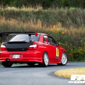 Maryland-based Old School Enterprises were given the strict brief of overhauling the WRX’s paintwork, with Alex’s choice of classic Ferrari Rosso Corsa red being applied both inside and out. While the car was there, the engine bay was fully shaved to further show off the quality respray. This initiated Alex’s plan to create the cleanest, smoothest Impreza possible, regardless of cost