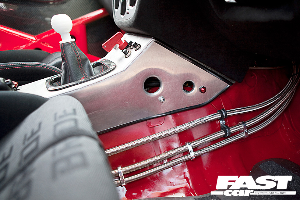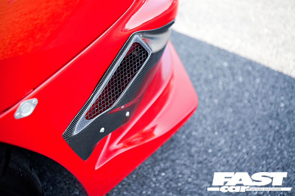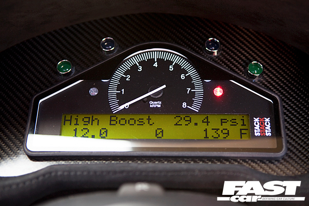 Inside, swathes of Alcantara, carbon-fibre and aluminium constantly remind you that you’re in something very special. A STACK digital dash and Bride Low Max buckets confirm that the interior has been treated with every bit of attention that the exterior has.