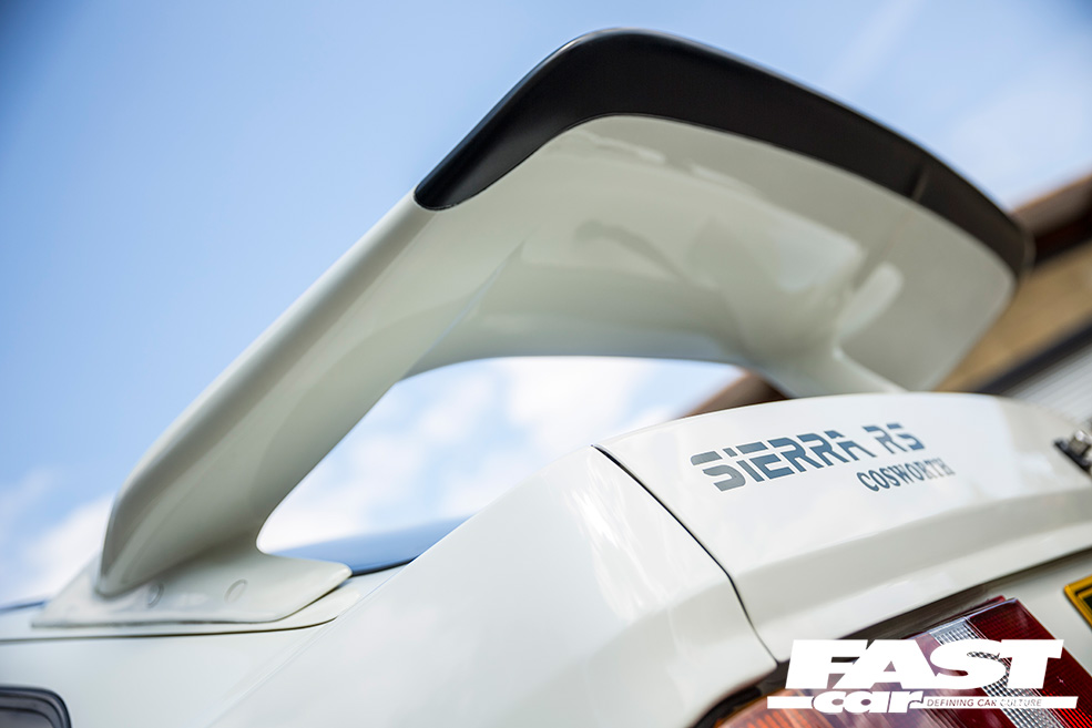 It wasn’t until the summer of 2008 that the Diamond White wonder that you see on the pages before you rolled into Jason’s life. “I’d spent the previous sixteen years developing my roofing supplies business,” he explains. “A busy work schedule didn’t leave much time for car shopping, but one of my employees stepped forward and told me that a mate of his was selling a white Cossie at a reasonable price. Intrigued, I arranged to view the car. Mechanically, it was a bit of a mess, but I was impressed by the fact that its paintwork was tidy and that its shell was free of corrosion. Needless to say, I ended the day as the proud owner of my very own Sierra Cosworth!” he beams.