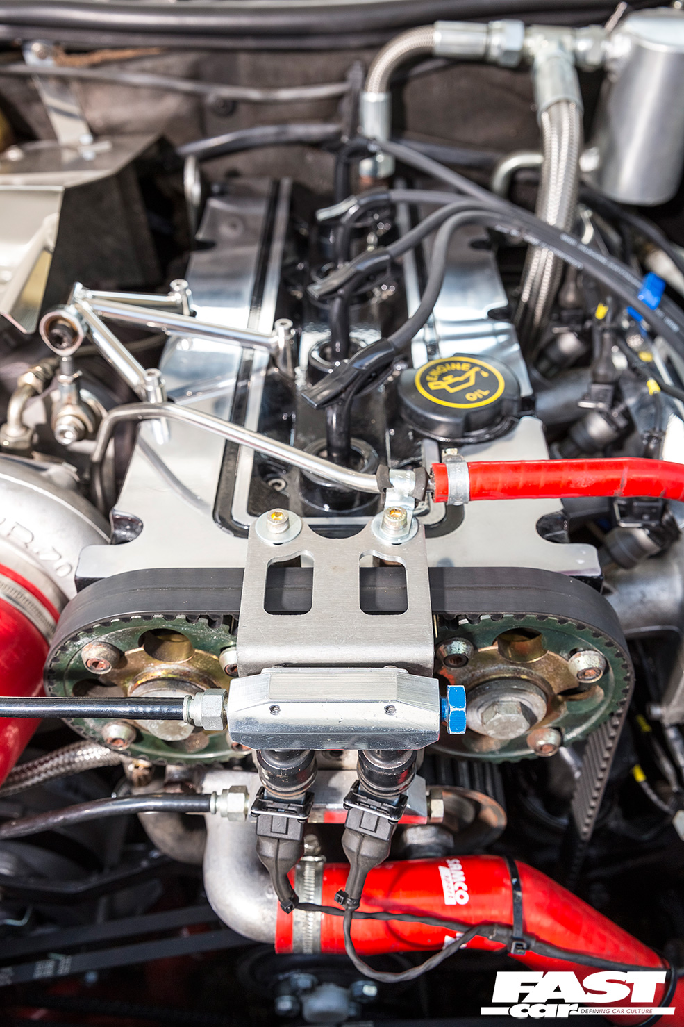 Jano is well known on the Blue Oval scene, and his Essex workshop has produced some fantastic fettled Fords over the years. He picks up the story regarding Jason’s Sierra: “The car’s fuel rail had snapped, its injectors were loose, fuel pipes were leaking, the installed loom was a mess and the gaskets used in the build of the forged YB were of poor quality!” he cries. Ouch! It might not have been the news that Jason was hoping to hear, but at least his pride and joy was in the hands of someone who was more than capable of righting a few wrongs!