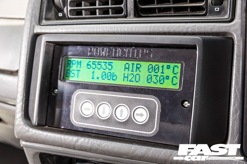 The Recaros weren’t the only parts to find their way into the three-door’s cabin. “One of Jano’s customers had removed a Collins Performance engine monitor from the dash of a modified Cossie. I was quick in my efforts to acquire the trick data delivery module, and I’m now able to keep tabs on engine sensor readings without the need to clutter my car’s cockpit with a stack of gauges,” grins Jason.