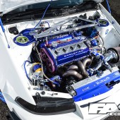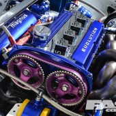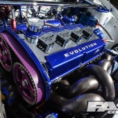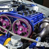 Gary built this beast of an engine on a different engine block. The original 2.0-litre 4G63 block was ditched in favour of a 2.3-litre 4G64 block instead. The details of the engine build remain a closely-guarded secret, we couldn’t get any details on the spec of the Jun cams either. We did get Craig to admit that the crankshaft, con-rods and pistons have all been replaced, leaving him with something like a 2.4-litre engine.
