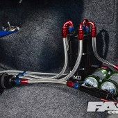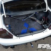 Incredibly, the Rukus Customs team stripped the Evo IV to bare shell, grabbed a load of Evo VI running gear and literally cut-and-welded the two together. Craig explains: “The VI chassis is wider, so it wasn’t simply a case of bolting the new stuff on. Despite what a few so-called experts told us. We quickly learned that we were the first ones to do this, so you expect some challenges when you’re exploring new ground. I’m glad we did it now.”