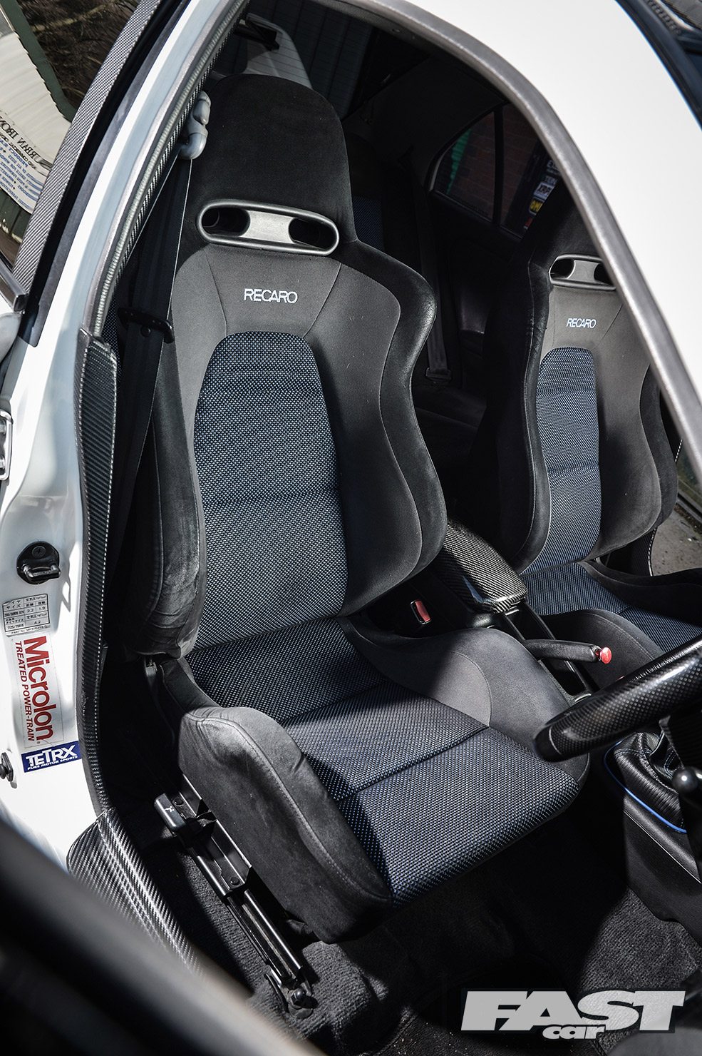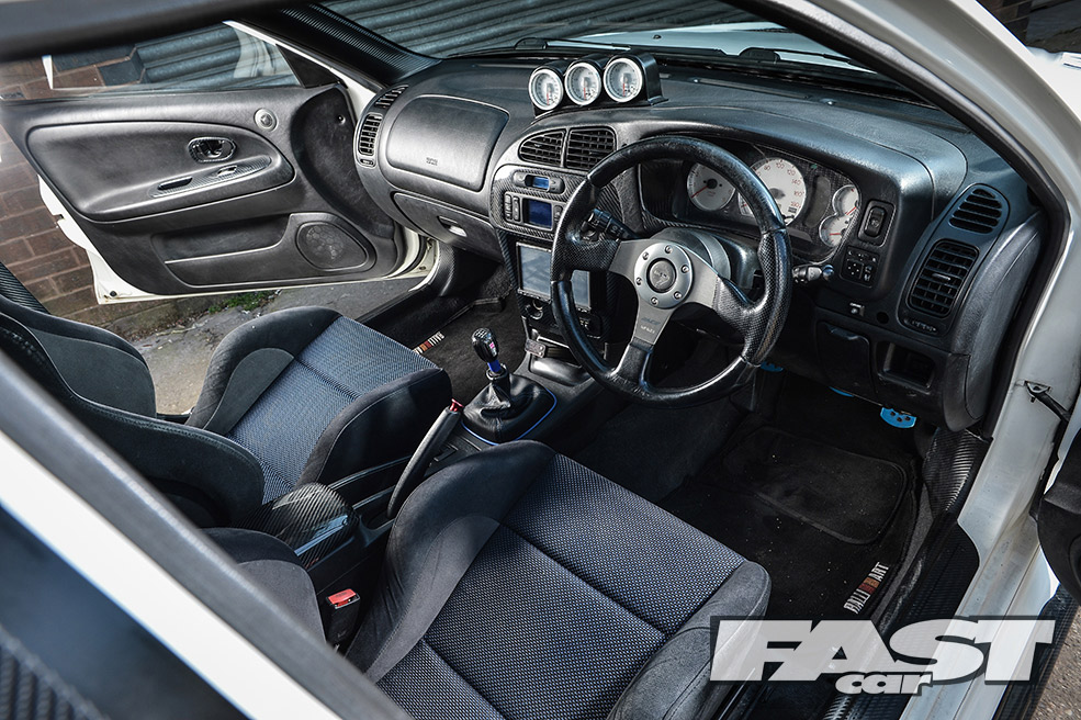 More capacity is good because it means more power and a wider power-band, primarily because the engine can spool the turbo a bit quicker. Which in this case is a very trick GT37-HTA from Ross Sport. With regular Super Unleaded petrol in the tank, the MoTeC M800 ECU was used to dial in the engine, resulting in a massive 700bhp at 1.8bar of boost (26psi). Enough to leave pretty much any opponent in the rear view mirror.