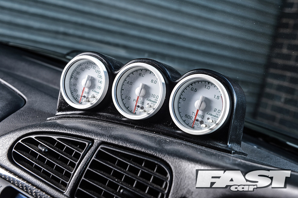 Evo VII seats, GReddy oil pressure, oil temperature and boost gauges