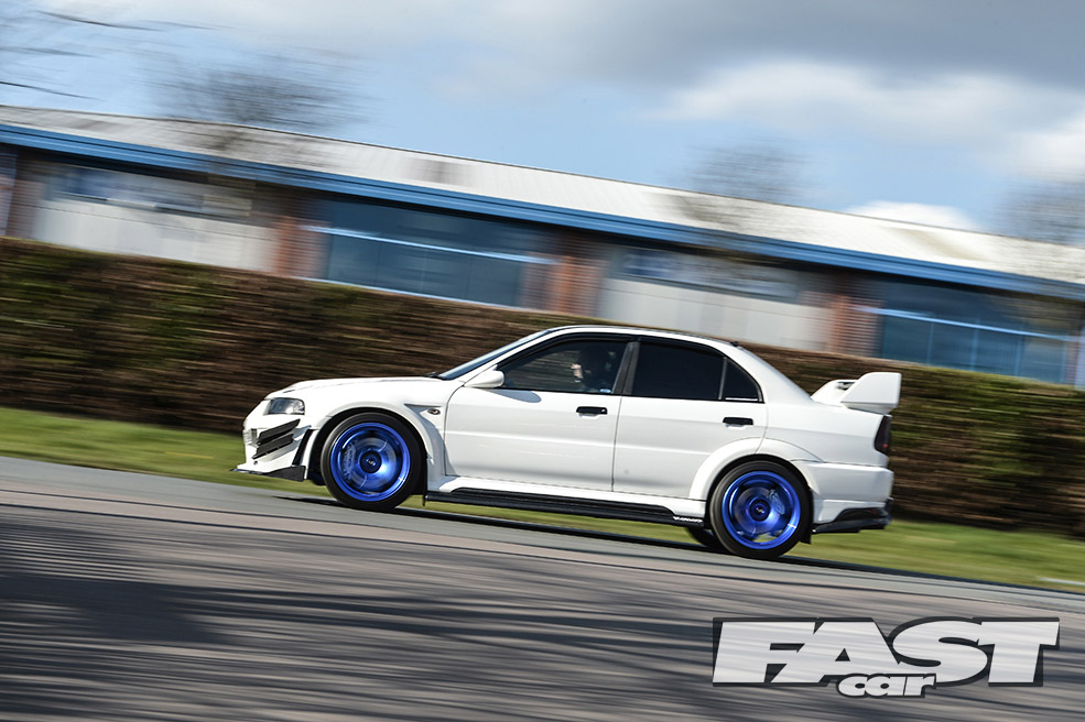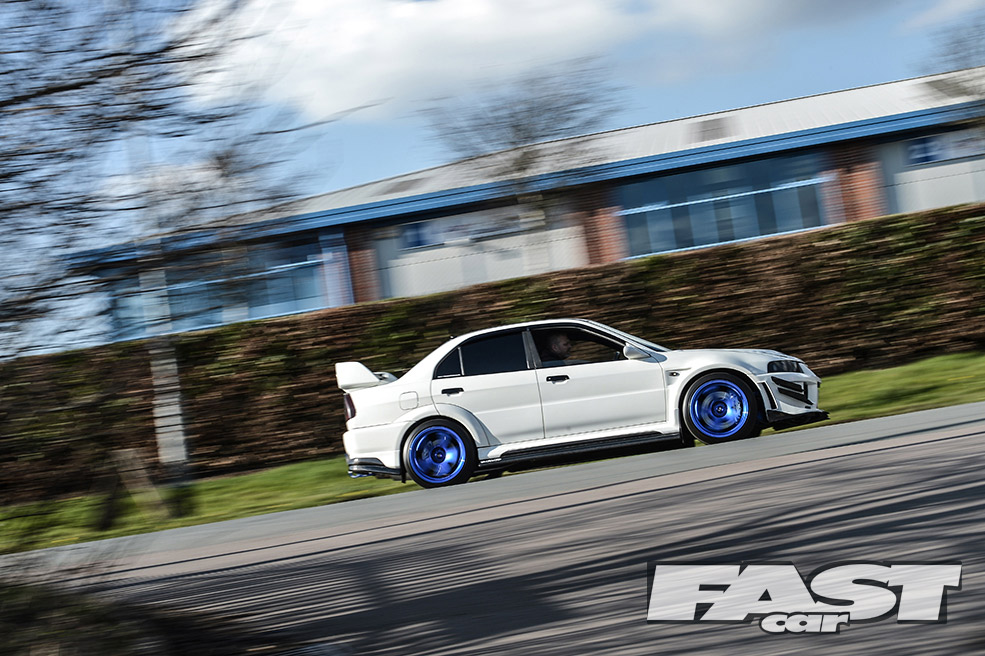 Firstly, the engine. It’s been put together with help from Ross Sport and AP Tuning, a combination that helped fellow Lancer Evo driver Phil Reed win the UK Time Attack Championship last year. Which explains its performance and reliability.