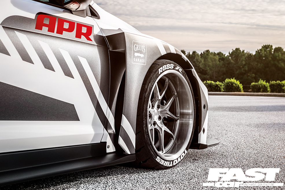 10×19″ APR two-piece forged wheels with 295/30 Toyo R888 R tyres, APR Roll-Control coilover suspension system, APR stainless steel dogbone/subframe insert, APR Roll-Control anti-roll bars and end links, APR six-piston brakes with 350x34mm two-piece discs