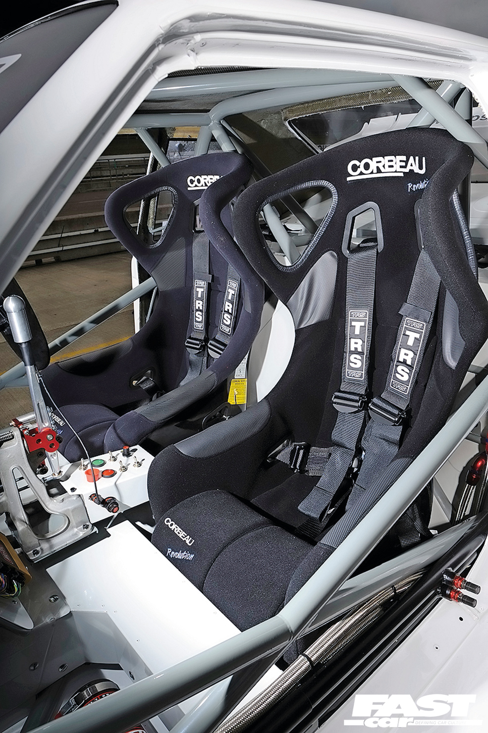 Krontec 3 air jack system, FEV on board fire extinguisher system, Corbeau Revolution seats, TRS harnesses, digital dash, multi-point roll cage, Sparco wheel