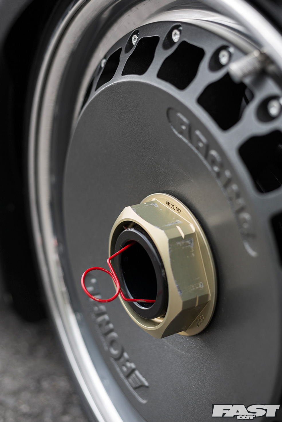 With the engine gear all up and running, there were a number of exterior touches done to complete the build, including a Voomeran Cup rear spoiler, with carbon-wrapped blade and black end plates, and DTM mirrors. The Ronal Racing wheels (16-inch, et38, 8j up front and 8.5j out back) came with staggered fitment, with centre-lock conversion and lightweight magnesium centres, all lovingly wrapped in 185/40 Falken ZE912 rubber.