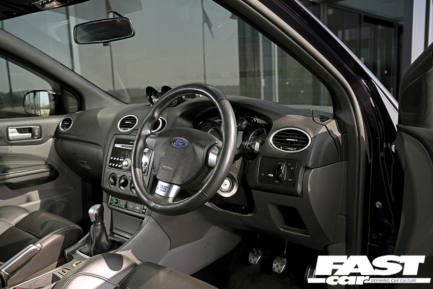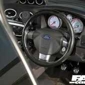 Mk3 Focus ST3 seats, Mk2 Focus RS steering wheel, gearknob and surround, Focus RS big screen clocks. Little Devil top pod gauges