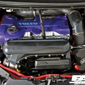 Modified Volvo S60R gearbox, Quaife LSD, Volvo V50 transfer case and AWD driver’s-side shaft, V50 propshaft, V50 all-wheel-drive rear subframe, V50 all-wheel-drive fuel tank, Ford Kuga diff, Quaife LSD, V50 rear driveshafts, V50 all-wheel-drive rear hubs