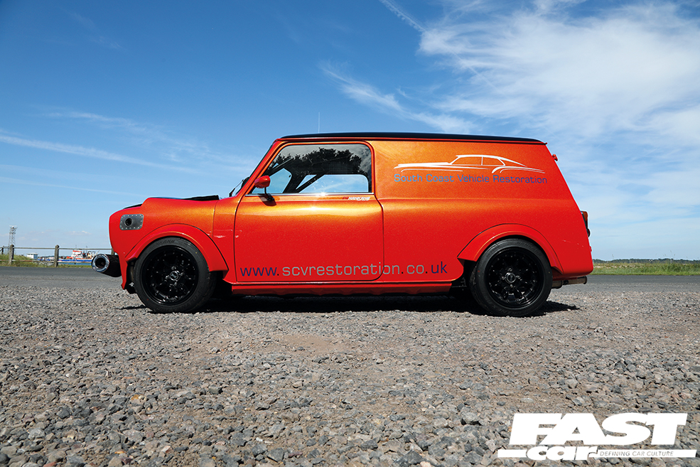 This Mini is clearly an impressive custom build and must’ve been fun to do alongside the day job… Alec owns South Coast Vehicle Restoration in Southampton. “We do pretty much everything in-house: paint, bodywork, wiring, suspension, general mechanics, we do it all. We don’t just do restorations though; we work on new cars too, such as paint repair. We’re quite unique. I’m more into the modified stuff though, things that are unusual and a bit crazy.”