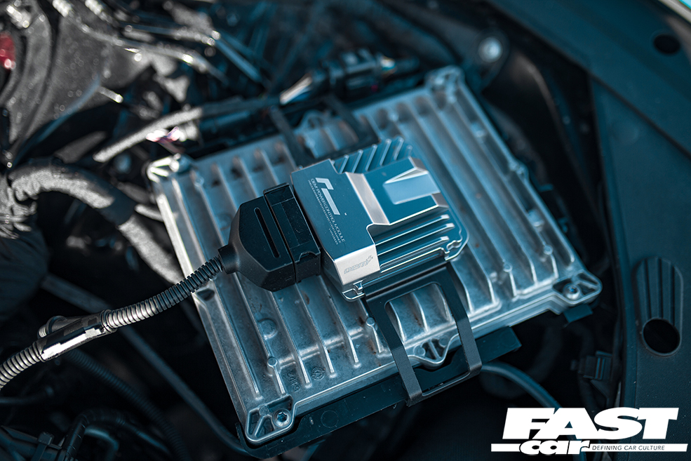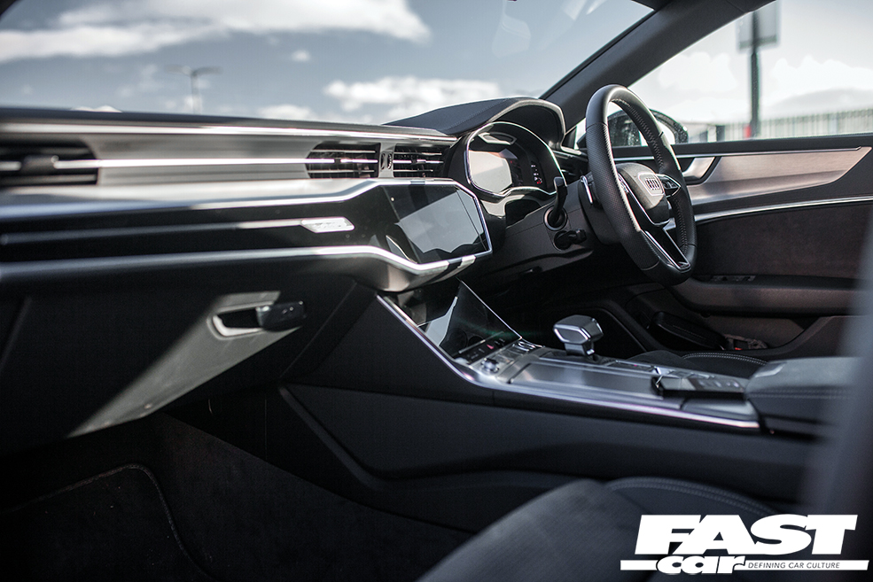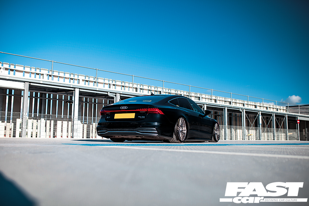 With the aesthetics taken care of, it was time to delve into the really important stuff, the true meat-and-potatoes of the project: the RacingLine performance upgrade. The company’s proprietary product here is the Power Control Module, and this is something that offers a full-car tuning package. It’s not just about winding up the boost and seeing what happens, or focusing on peak power at the expense of usability. No, this is a holistic tune designed to mimic the parameters of the OEM while markedly amplifying figures across the board – this means more power and torque across the rev range, better efficiency; an OEM+ result. A neat by-product of this is improved fuel economy, but you’re reading the wrong mag if that’s your primary concern. This upgrade isn’t just about raw numbers, although the peaks are always important: we’re talking a gruff 330bhp and 700Nm (translating to 516lb.ft), and that’s not the sort of anger and fury you’d expect to find inside a subtly styled A7 with TDI badges. All of this speaks of RacingLine’s tuning prowess – they’ve been doing this sort of thing for long enough that it’s all second nature, they know it inside out. So this A7 may have been built as a show car, and the aired out menace over its racer’s-edge rims may talk the talk exceedingly eloquently… but a RacingLine build is all about the performance, and this superb Audi demonstrates it in fine style. Endless acres of silky, stealthy thrust. Matt’s been using it as a daily driver, and the sublime duality is playing out just as it should: “It’s great fun to drive, and people seem to love seeing it,” he says, which is pretty much mission accomplished. The evidence is abundantly clear that in cases like this mixing the work life and the home life can happen in perfect symbiosis; the car’s working hard to earn its keep (a RacingLine 8-pot 430mm brake upgrade is next on the to-do list), and at the same time it’s slotting into this seasoned modifier’s everyday life just splendidly. The perfect formula for modern living.