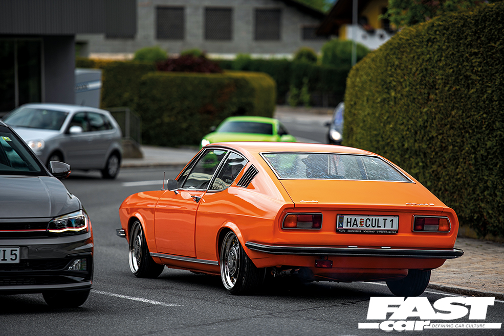 Nevertheless, this is not a man who mucks about with such matters; he knew what he wanted to achieve and he got stuck in. One thing which proved particularly helpful (and was a major factor in buying the car in the first place) was that it was mercifully complete – a runner with a full interior, so there was no need to search the world for obscure trim pieces and hard-to-find accoutrements. Even so, it was no simple task, and it took a full 350 hours of hard graft to repair and perfect the shell, cutting out all the rust, replacing the damaged panels with fresh new ones, getting everything aligned and finishing the whole thing in that vivid jaffa paint. This last part was taken care of by refinishing supremo Philipp Tscholl; once the body was finessed, it was delivered to him to save as much of the original orange paint as possible and colour-match the new bits in a seamless fashion – the result is utterly flawless, stunning, and far more involved than simply blowing the whole shell over in a new coat. The originality that remains tells an endearing tale.
